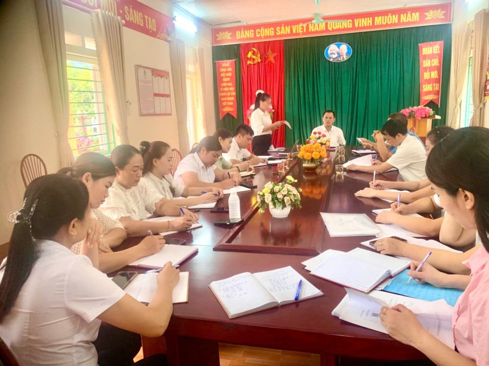 Đồng chí Phó Bí thư Thường trực Đảng ủy xã Vĩnh Tuy Nguyễn Doãn Thiện làm việc với Chi Bộ trường mầm non Đông Thành