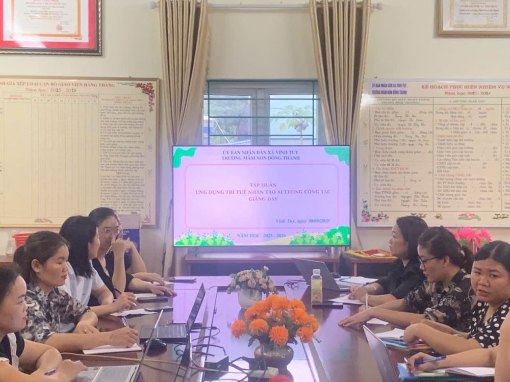 Chiều ngày 30/9, Trường mầm non Đông Thành - xã Vĩnh Tuy đã tổ chức thành công buổi tập huấn chuyên đề “Ứng dụng công cụ AI trong giáo dục” dành cho đội ngũ cán bộ quản lý và giao viên của nhà trường.