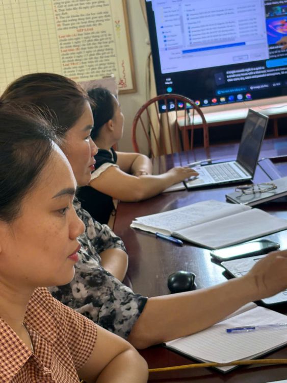 Phần thực hành là một trong những điểm nhấn quan trọng của buổi tập huấn. Các cán bộ quản lý, giáo viên đã được trực tiếp trải nghiệm các công cụ như ChatGPT, Copilot, Canva AI, Pĩveser AI và các phần mềm hỗ trợ thiết kế bài giảng,. Nhiều nhóm đã triển khai việc soạn giảng ngay tại lớp, chia sẻ các ý tưởng sáng tạo về cách ứng dụng AI vào các học tiết học cụ thể.