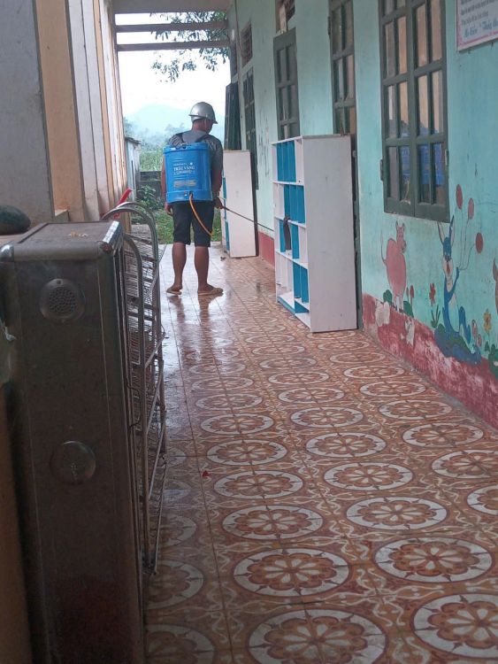 Hoạt động được triển khai đồng bộ tại các lớp học, khu vui chơi, hành lang, khu vệ sinh và toàn bộ đồ dùng, đồ chơi của trẻ. Việc phun thuốc được thực hiện đúng quy trình, sử dụng dung dịch an toàn, góp phần làm sạch môi trường, hạn chế sự phát sinh và lây lan của các tác nhân gây bệnh.