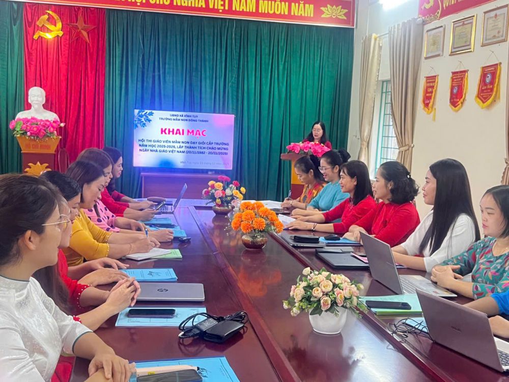 TRƯỜNG MẦM NON ĐÔNG THÀNH KHAI MẠC HỘI THI GIÁO VIÊN MẦM NON DẠY GIỎI CẤP TRƯỜNG NĂM HỌC 2025 - 2026, LẬP THÀNH TÍCH CHÀO MỪNG NGÀY NHÀ GIÁO VIỆT NAM (20/11/1982-20/11/2025)