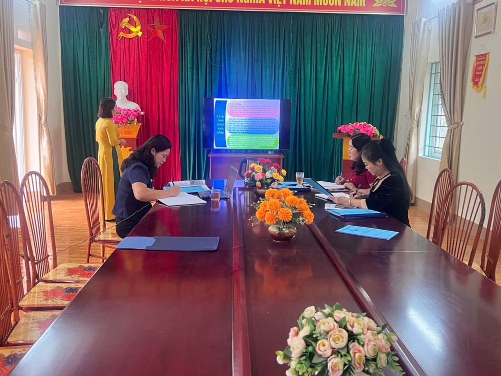 Đồng chí Phó Bí thư Thường trực Đảng ủy xã Vĩnh Tuy Nguyễn Doãn Thiện làm việc với Chi Bộ trường mầm