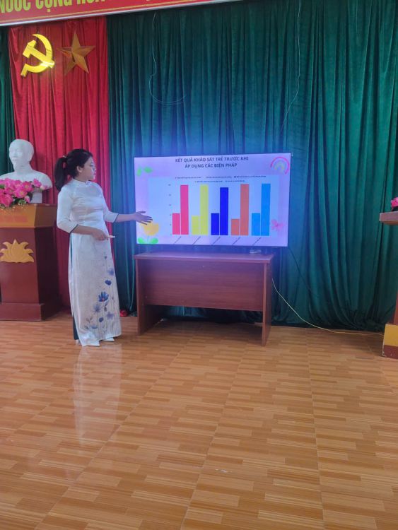 Với nội dung thi thứ nhất: Trình bày một biện pháp góp phần nâng cao chất lượng công tác chăm sóc, nuôi dưỡng, giáo dục trẻ em của cá nhân tại nơi giáo viên đang làm việc, 100% các GV tham gia đều đã đưa ra những giải pháp cụ thể, có tính ứng dụng hiệu quả trong thực tiễn giảng dạy các môn học góp phần nâng cao chất lượng công tác giảng dạy của GV. Điều này thể hiện rõ qua kết quả đánh giá chất lượng trẻ các lớp trước và sau khi áp dụng các giải pháp. Những giải pháp, sáng kiến của các cô giáo không chỉ được áp dụng hiệu quả tại lớp mình mà còn được chia sẻ, lan toả và áp dụng ở nhiều lớp trong cùng khối và các khối lớp khác trong nhà trường. sự nỗ lực trong việc ứng dụng công nghệ thông tin, xây dựng môi trường học tập thân thiện, hạnh phúc cho trẻ.
