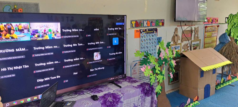Buổi sinh hoạt được triển khai trên nền tảng trực tuyến, thuận tiện cho các điểm cầu tham dự. Buổi sinh hoạt tiến hành dự 01 tiết dạy KPKH độ tuổi mẫu giáo 5-6 tuổi. Tiết dạy đã ứng dụng công nghệ thông tin và trí tuệ nhân tạo trong thiết kế bài giảng, đổi mới phương pháp tổ chức hoạt động cho trẻ theo hướng trải nghiệm – khám phá, nâng cao chất lượng chăm sóc – nuôi dưỡng trong nhà trường.